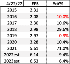 ・EPS:(FY22.Q3)$1.25 /(通年)$6.17