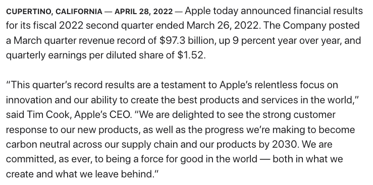 アップル($AAPL)のFY22.Q2決算発表【好決算】