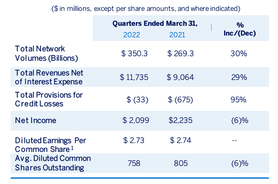 American Express($AXP)FY22.Q1:決算発表サマリー ### 売上:○、EPS:○、ガイダンス:△