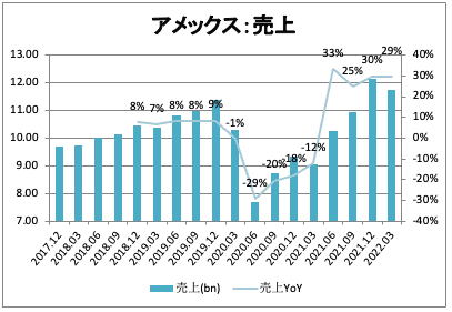 ・売上:(FY22.Q2)$12.32B (前年比 + %) (通年)$50.28B (前年比 + %)