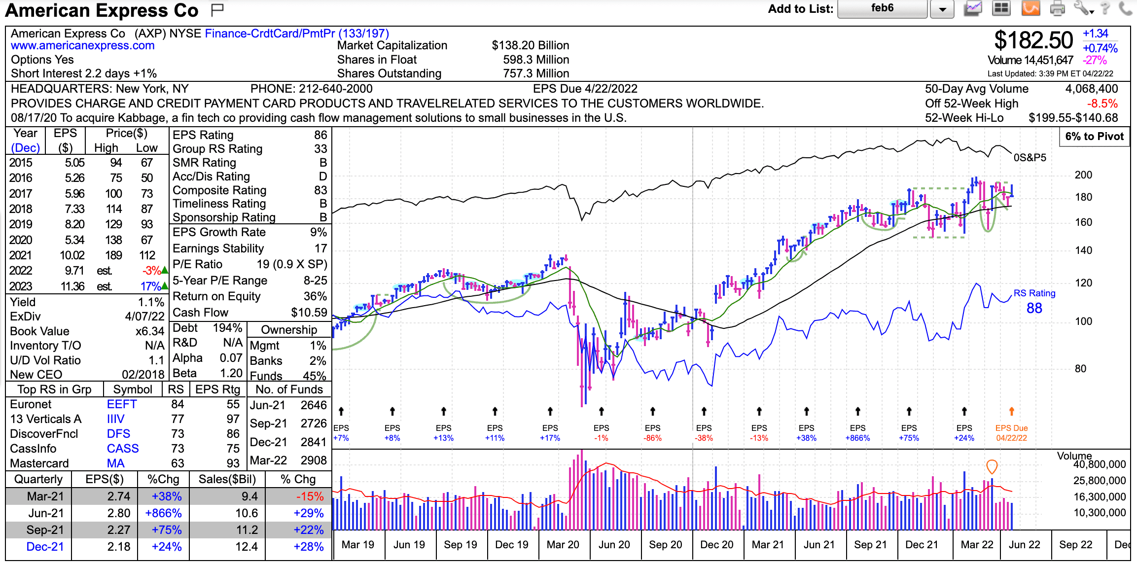 American Express($AXP)のFY22.Q1決算発表【ガイダンスEPS未達】