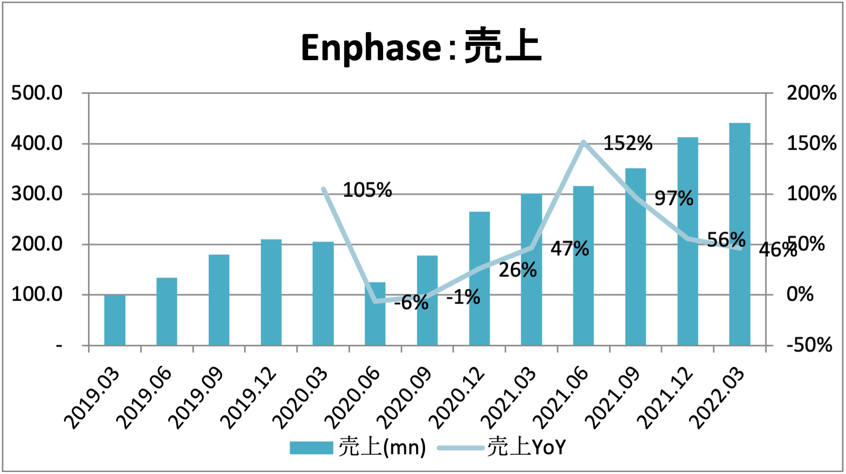 エンフェーズ($ENPH)のFY22.Q1決算発表【好決算】