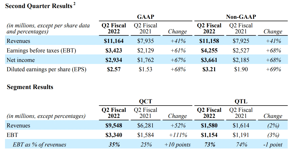 クアルコム($QCOM)のFY22.Q2決算発表【好決算】