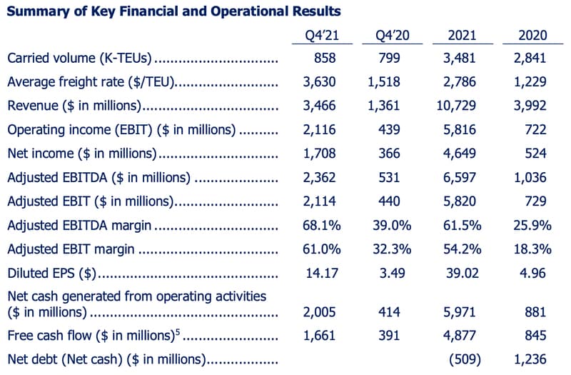 ZIM($ZIM)のFY21.Q4決算発表【好決算】