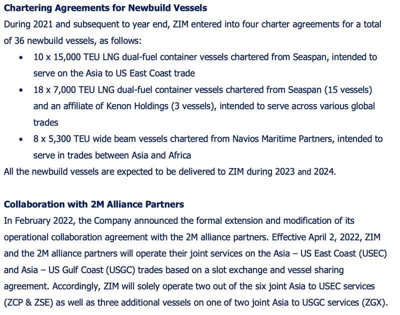 ・船舶の運用数:2021 年 12 月末時点では 118 隻で、内コンテナ船が 110 隻と残りは自動車専用の船。実際に所有しているのは 4 隻だけで、残りはリース(chartered-in)していて、全部でキャパシティが 426,725TEU。