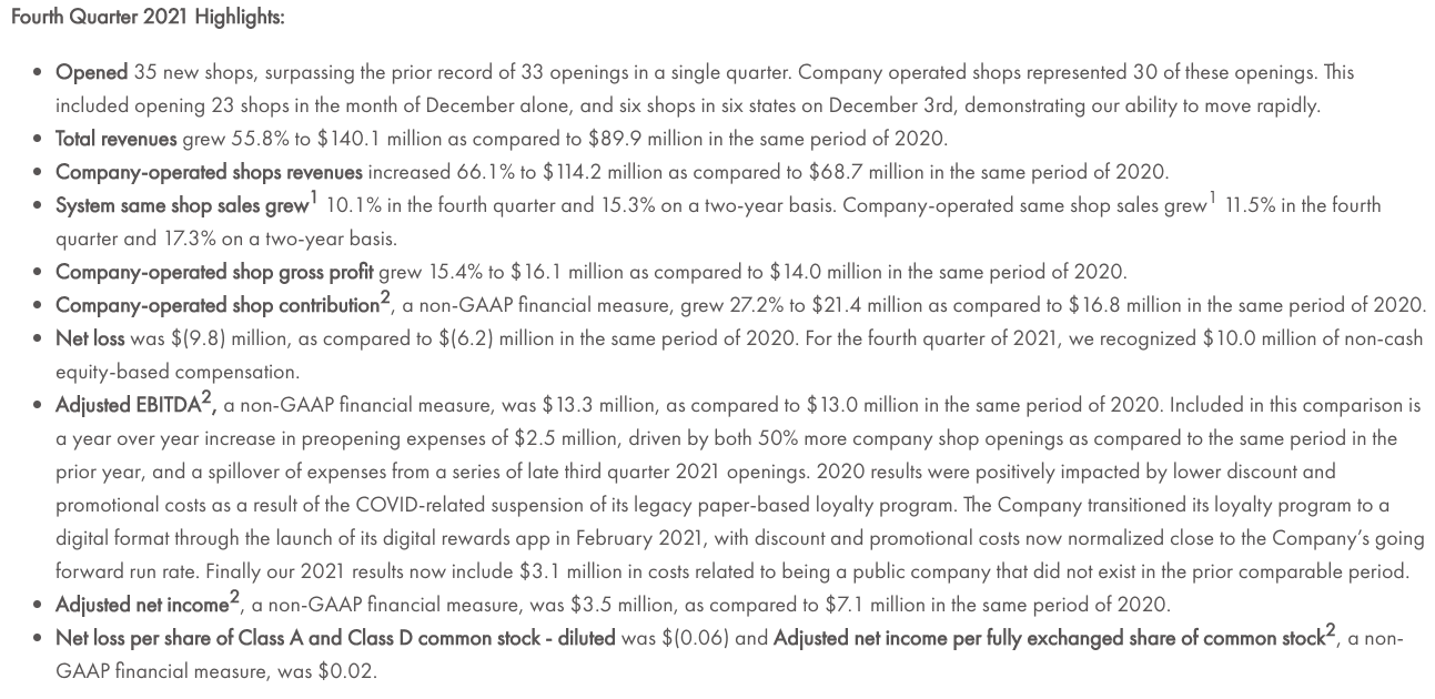 Dutch Bros($BROS)FY21.Q4:決算発表サマリー