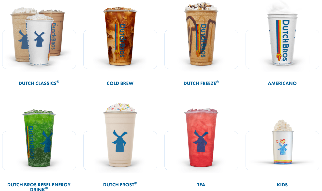 ダッチ・ブローズは 1992 年に設立された、ドライブ・スルーのコーヒショップチェーンです。店舗はアメリカの西海岸がメインで自社店舗とフランチャイズ両方あり、セールズポイントとしては高品質・迅速かつ高いレベルのサービスです。エスプレッソを含む飲み物がメインではあるものの、様々な飲み物の選択肢を取り揃えています。