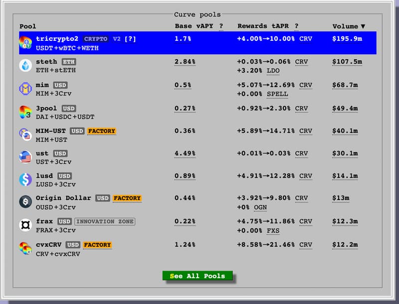 Curve V2へのアップデートは、ステーブルコインだけでなく他の暗号資産も取り扱うようになります。カーブで取り扱う新しいプロジェクトの出来高成長を意味する